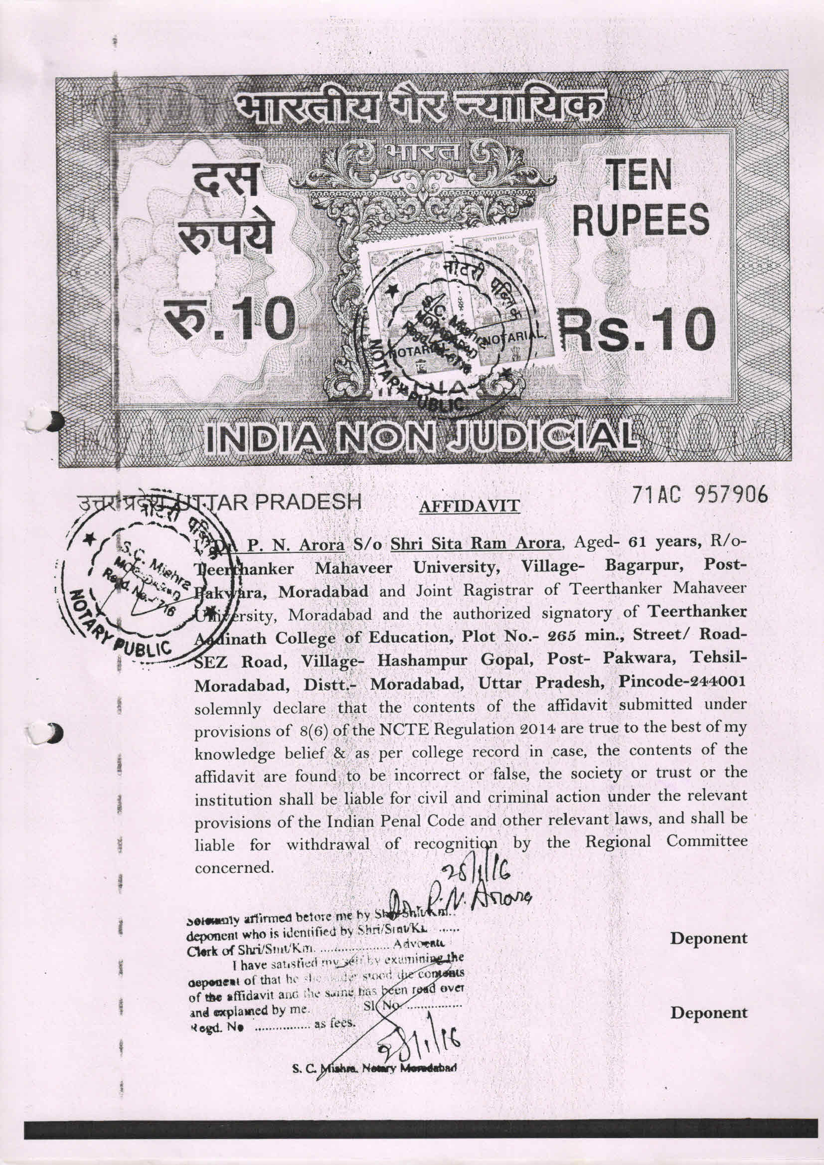 | Affidavit of Provision 8(6) | Click here to Open File |