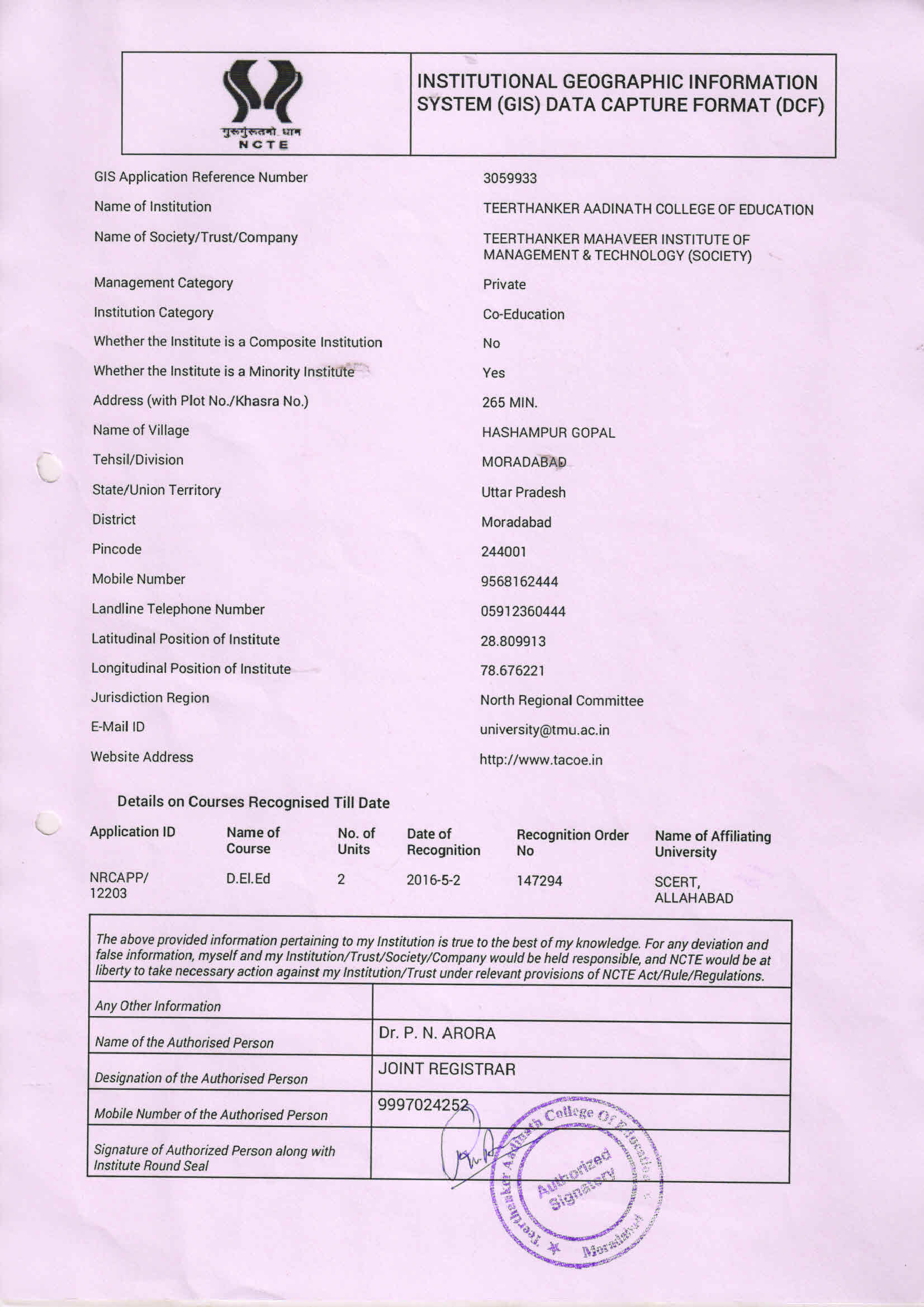 Sanctioned programmes along with annual intake in the institution; |